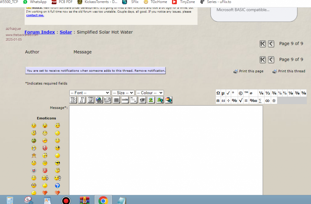 Hi Gizmo, Reference <https://www.thebackshed.com/forum/ViewTopic.php?TID=11546&P=9> Uploaded a reply this morning. Duly received email with the correct text I had uploaded. The forum added another page (page9). However my reply is not showing up on page9. Instead an empty reply field as in the image below shows up. FYI pls. |