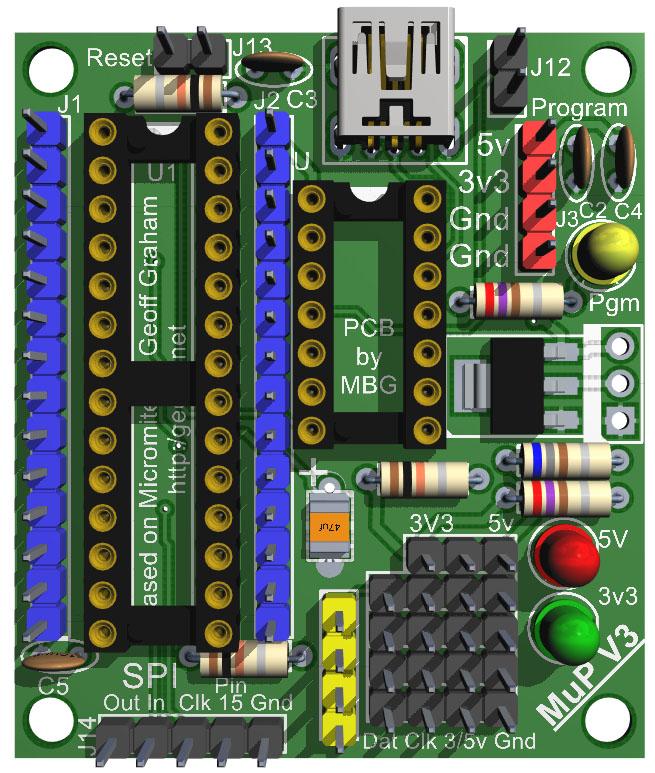 Hi All, It has been about 18 months since I last posted in this thread. By request I have decided to release my most popular PCB, the MuP Ver 3. MuP3 Gerbers: (recommend getting it done in 1.2mm PCB fibreglass) Gerbers MuP3.zip MuP3 Manual MuP3.pdf MuP3 Project file for DEXPCB MuP3 Project file for DEX-PCB.zip ![]() ![]() Enjoy, Regards, Mick (The Big One) . Edited 2025-03-09 18:46 by bigmik Mick's uMite Stuff can be found >>> HERE (Kindly hosted by Dontronics) <<< |
