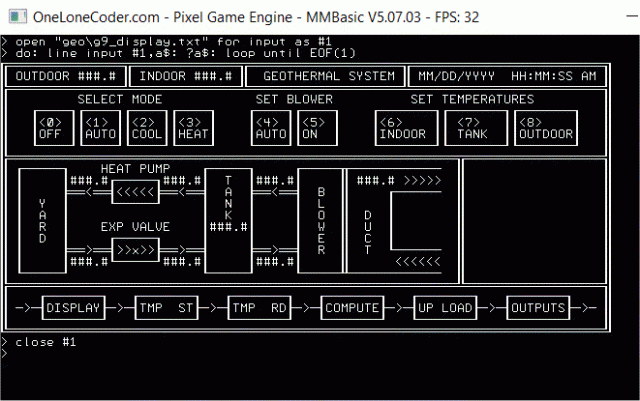 Thanks Lizby 'MMEDIT!!! Basic Version = CMM2 'MMEDIT!!! Port = :10,300 'MMEDIT!!! Device = CMM2 ' =========================================================== ' GEOTHERMAL CONTROL PROGRAM GCP.BAS V1.00g 06/20/2022 ' BY: PAUL LEPKOWSKI & LANCE BENSON And I thought I was nearly there. I have much to do but the oncoming light may not be a train. I have to do the shopping this morning. Peter(B) |