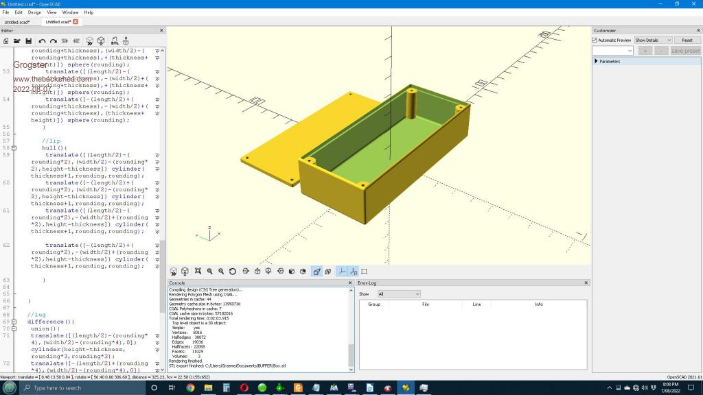 Thanks everyone, useful information. I have downloaded openSCAD and will play about with that. If anyone has any simple STL files they would like to share for me to experiment with, please do upload them here. AT THIS STAGE, I am never gonna want anything other then project enclosure/cases that I will get made at JLCPCB to test out their printing abilities. Smoke makes things work. When the smoke gets out, it stops! |