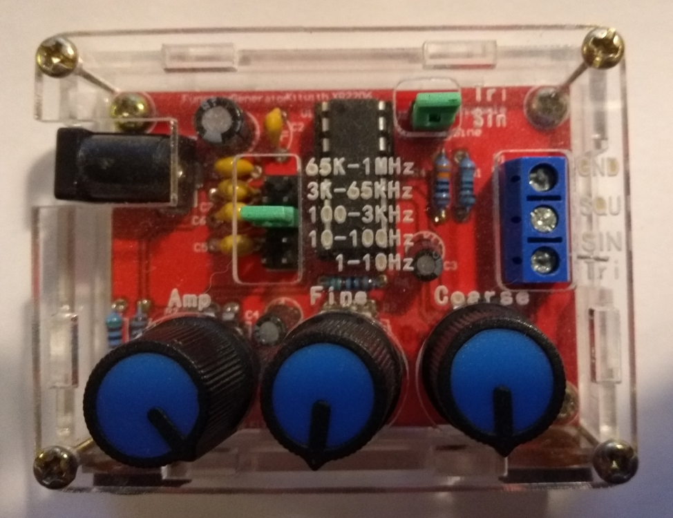 Some time ago I bought a XR2206-kit from amazon (I have forgotten the price). One can tune the knobs but you don't know the frequency and the values are "jumping" due to the "quality" of the potentiometers. There are jumpers for selecting ranges of values and for the form of the signal. (see below)
