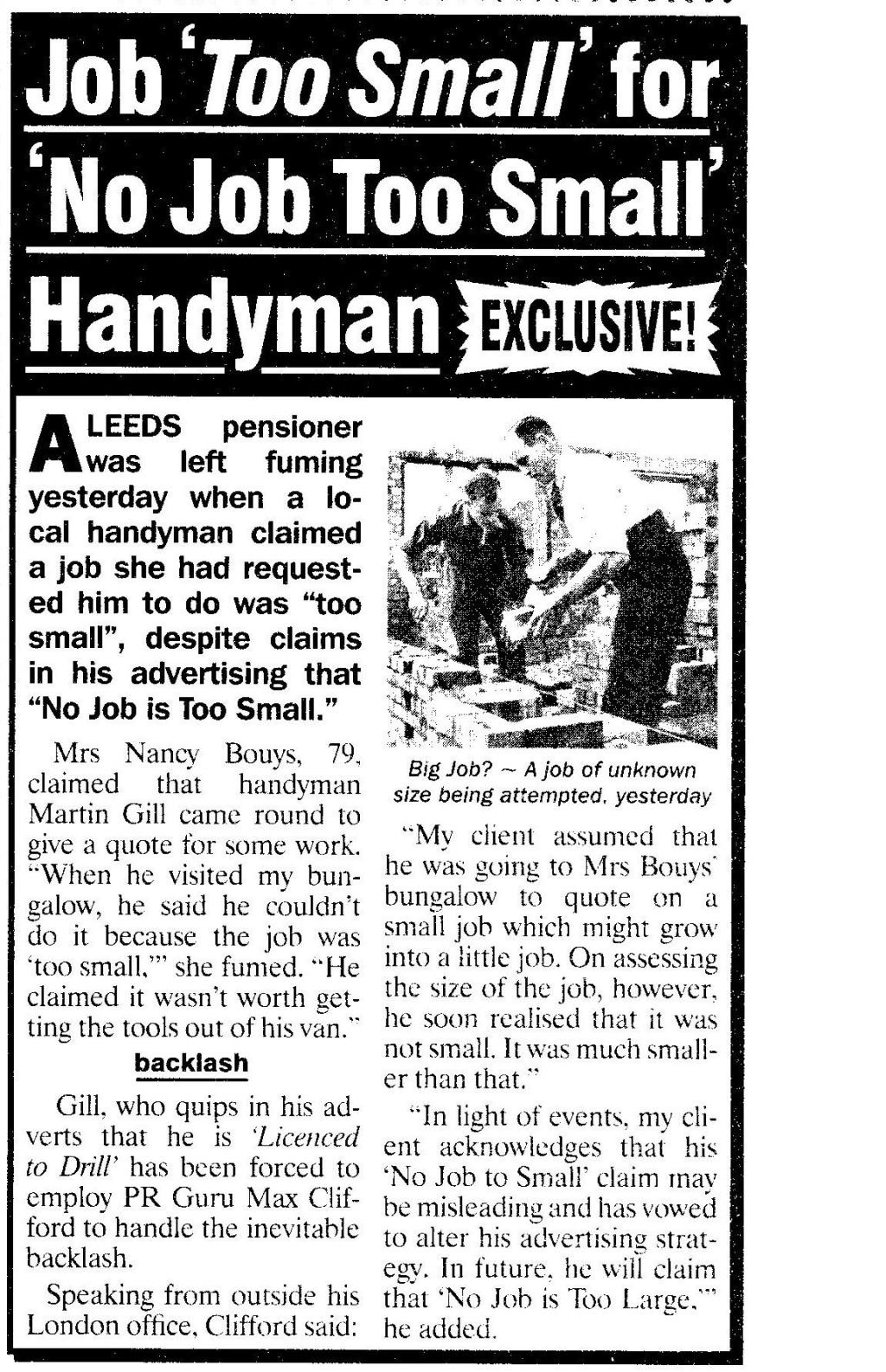 Seamus: "Would you look at that Paddy, just our luck, they're wanting tree fellers and there's just the two of us"