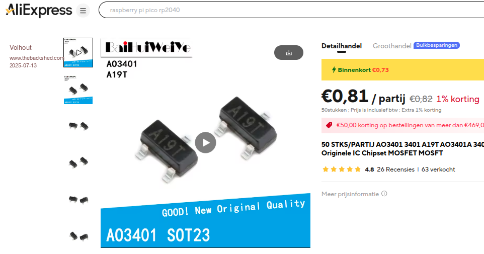 A nice logic level Pchannel FET for the 5V 1A current: AO3401