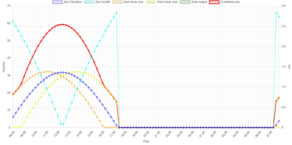 I have two arrays both 2.5kW, one pointing east and one pointing west. Both on a 15 degree slope.