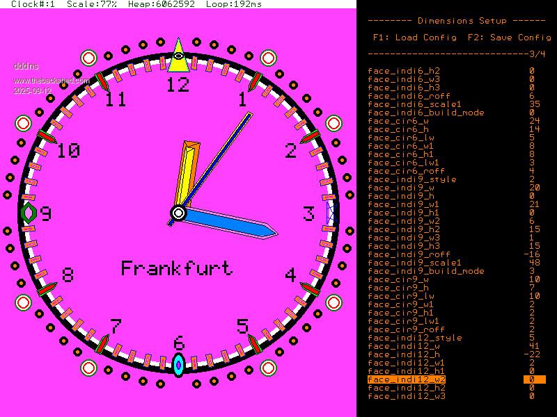 Hello! Having the numbers beyond the face radius can be stylish as well as having the hour markers as 14 corners and the width so large, that they touch each other. If you set it beyond the face, it can be a very nice decoration, the circles too. So all of those are valid style elements and I will definitely try to care. I started with this as HDMI was in a extreme hype but came from ssd1963 LCD as main console. So my first try at the beginning was to get a nice graphic on LCD and I never forgot. Everyone who is interested please try to run the extract on a LCD no matter what resolution. It should run, if you comment out the MODE and the TILE lines. With PSRAM, even the designer should run. Please give it a try! Please experiment with OPTION LCD320 Edited 2025-09-27 00:44 by dddns |