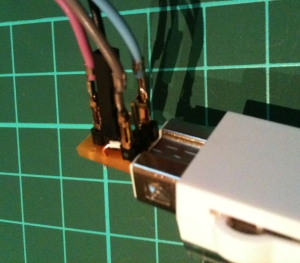 The home-brew adapter is a bit rough, but works pretty well. You will need a bit of stripboard of the sort that has vertical and horizontal copper strips (although the orginal Veroboard type might work with some ingenuity). You wil also need some single strand insulated wire, and 5 header pins. See below for stripboard I used: