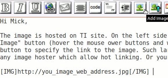 The image is hosted on TI site. On the left side of "Image Upload" button is the "Add Image"