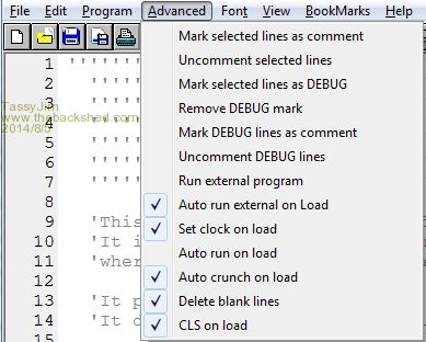 I have been doing more work to make MMEdit more useful with large programs. If you are not worried about fitting your program into the maximite/micromite memory, you can ignore these options. I have put them into an 'Advanced menu'