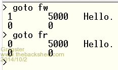 From the command prompt, if I enter GOTO FW or GOTO FR, BOTH return zeros as the results, which is not what is expected - it should be 1 5000 Hello. for the FW test, and 0 5000 Hello. for the other test.