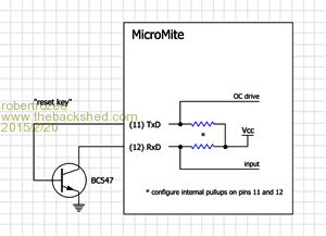 geoff: you put an extremely strong case for retaining some sort of "emergency recovery" system. i'm going to push again for this being in the form of a single transistor "key", to be connected when required to TxD and RxD as below: