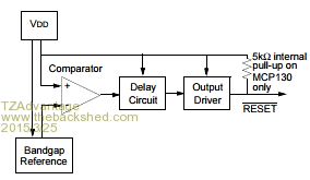 This version has a built in 5k pullup resistor. The 10k resistor that is also a pullup will lower the total resistance to about 3.3K. The MCP120 has no internal pullup. Microblocks. Build with logic. |