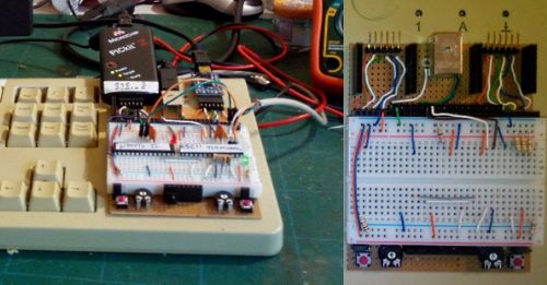 The basic idea is to build one of Geoff's ASCII controllers into a Keyboard and plug the hole with a breadboard.