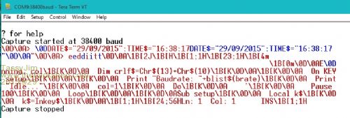 PRINT "Capture started at "+blist$(brate)+" baud"