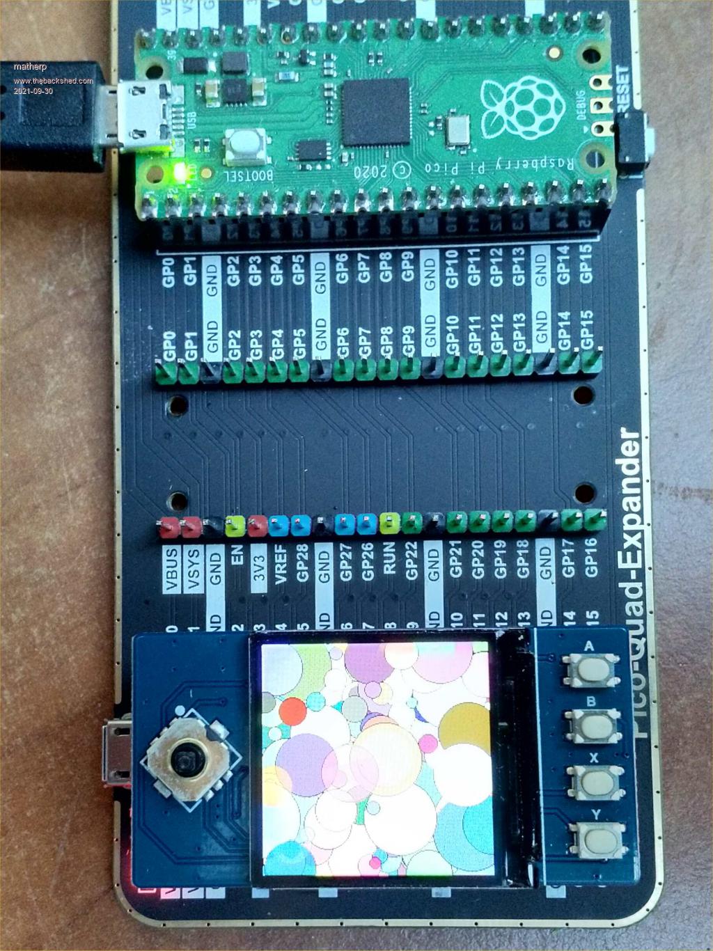 Here is the first display working. This is the 240x240 ST7789 which is already fully supported by the firmware. The display is small but very colourful and bright