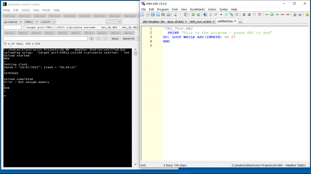 Forum Index : Microcontroller and PC projects : Loading prog. with MMEdit to Pico - "Not Enough Memory"