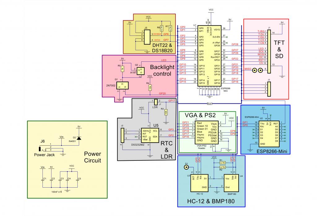 Hey I can add them here. No schematic of the PS2 and VGA but it is the circuit from the manual.