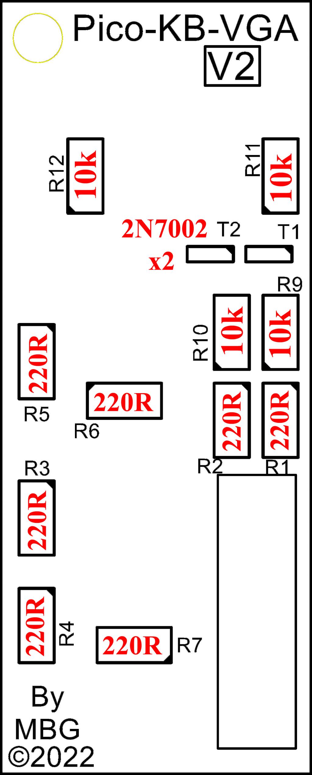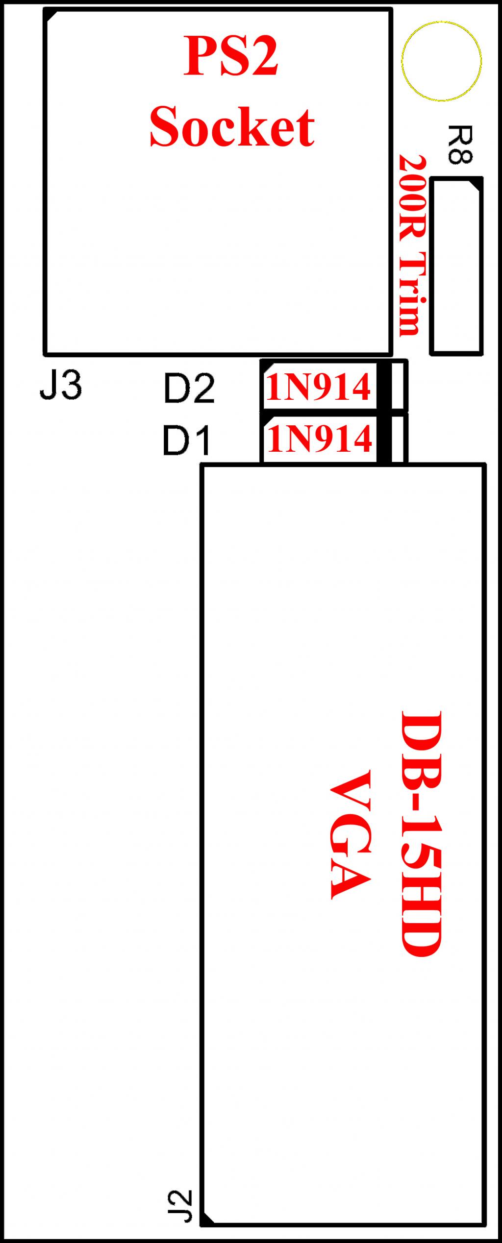 A 2 x 7 pin header to go to a daughter PCB that has PS2 and VGA. (In the picture below I have 2 resistors, to determine the value for the second Green as I didnt have a 200R timpot)
