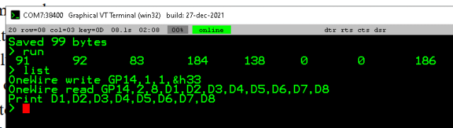 I think I will get in three or four devices to play with.  If I only get a couple, it won't break the bank if I/we can't make them work under MMBASIC, but I remain hopeful that the OneWire commands in MMBASIC will be able to talk to these memory devices.