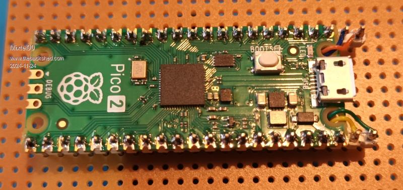 As you can see, it is still 0.1" breadboard compatible and the extra pins are easily removed later if you decide that you don't want them. You could do this with any of the RP Pico modules but the signals may not be available on some clones.
