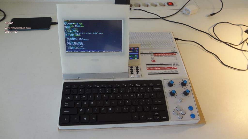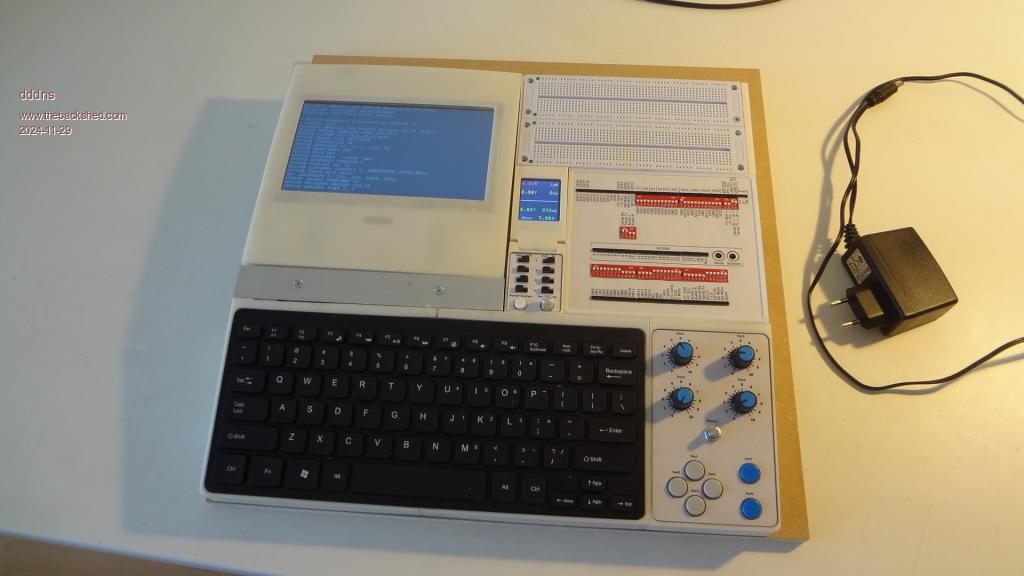 I have realized a long-term thought and built an autonomous computer-based electronic development console. It is just a draft an still work in progress. Electronic wise it is running already very well at 378Mhz. Working with the console and the editor on this 7" display is