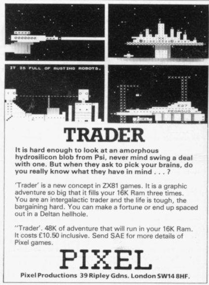 Way back in '81 I used to look at adverts like the one below - and drool over what I thought was a fully fleshed out space sandbox. Experience (or cynicism) has taught me that these were possibly the only graphics in the game, but I quite like the idea that my game would be a spiritual successor to this sort of game.