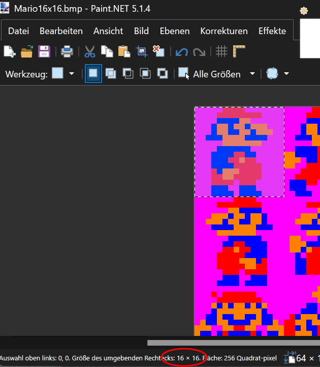yes the Mario Sprites are 16x16 (Picture in the Images Folder)