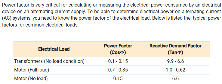 Bit horrified at this but I checked typical Power Factors for DOL (direct-on-line) induction motors: