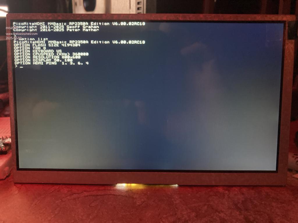 You're right - I'd misread the info. It's got 5V on pin 39, intended for VSYS. That's fine. I'll feed it to VBUS via a diode. To install or update MMBasic unplug the display and connect the PC to the Pico USB as usual. You can then use the Pico's USB in host mode for a hub while you power the system from the display's USB. The diode will prevent a big current draw from the PC.