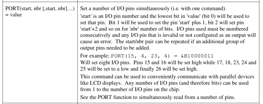 The same for reading the port. The port is being scanned bit by bit. If you are trying to sample parallel inputs you can get wrong states if the inputs change during the scan. Let's say you want to make a simple logic analyser: if the data changes during the scan you get false information by using the PORT function.