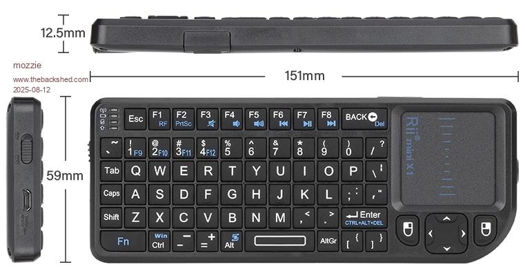 G'day Peter, The Palm Pico unit is looking good, the keyboard is always a PITA. Whilst there will be no "perfect" layout, I have found the Rii X1 keyboard to be surprisingly good, even though it is tiny. It looks like, similar to the keyboard you have used, the keys are a raised "bump"and this makes a huge difference, I have similar units with flat keys that are practically useless with normal fingers, and larger keyboards that are not as good as this one. If you can find something with a similar profile, it may be possible to add an extra row at the top for an improved layout using rectangular keys. Considering JLCPCB will more than likely be making the pcb's, would it be worth considering using 6mm tactile switches and have them plastic print keycaps as part of the job? They could be printed as a single grid and pulled apart to be fitted. They may also be able to print them in a flexible material as one piece. This is the X1 used in my Pico Terminal, the keys are 7.8mm / 8.5mm pitch Horizontal and 7.3mm / 8mm pitch vertical, the keyboard itself is 102mm x 51mm ![]() One more option, I previously built a device that used a resistive touch screen panel over a piece of paper as a keyboard, its not perfect but it works and they are easy to find. Hope this is more help than hinderance... Regards, Lyle. |