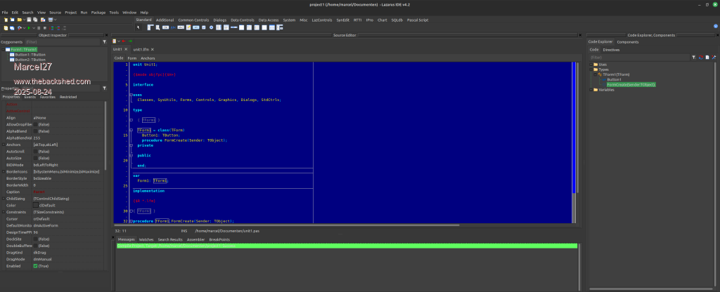 Thanks to Peter63.... I saw that my Linux distro had an old version of Lazarus 2.2.6+sfsg2-2 in it's programming source. I Uninstalled it and downloaded the latest version from the Lazarus website. It has besides the old one, a new IDE interface - single window just like Visual Basic. Now it more usable. In the past I dumped Lazarus because of the dull scattering and not docking windows. Lazarus 4.2 (rev Unknown) FPC 3.2.2 x86_64-linux-gtk2 ![]() Edited 2025-08-24 04:33 by Marcel27 |