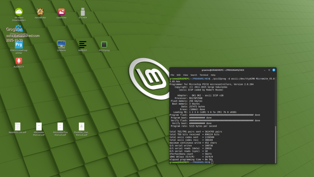 Thanks chums. As there is a Linux version of PIC32prog that I was not aware of, I will download that, and simply keep it in the same folder as all the HEX files, so that programming via the terminal should be easy-peasy. I'll try it out in the next few days. Been on Linux Mint now 24/7 for almost two full weeks. EASILY as good as W10, and having nothing other then minor little hiccups with things such as this. Email/Internet etc, has been running flawlessly. Smoke makes things work. When the smoke gets out, it stops! |