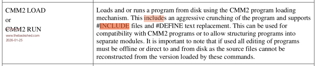 I tried it, it didn't work, and I posted a question about it quoting that CMM2 LOAD text from the Picomite manual. Peter explained that it did only work with CMM2 LOAD, which (as the manual says), strips out comments and white space. PicoMite, Armmite F4, SensorKits, MMBasic Hardware, Games, etc. on FOTS |