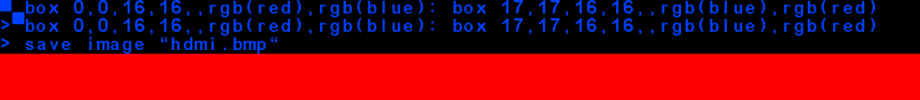 The blue text in the image is actually white on the screen. CLS RGB(RED), CLS RGB(BLUE), etc. work as expected. I thought the two little boxes in the upper left corner would be red border around blue fill, and blue border around red fill. Hoping again I've just done something silly.