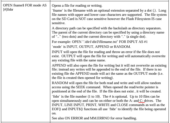 Notes on MMBasic BASIC Interpreter Ver 6.02.00 - manual