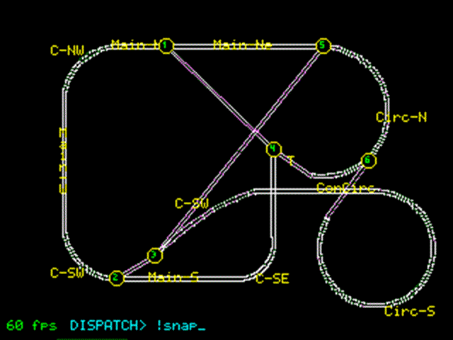 Vibe Virtual Model Railroading I wanted an application to exercise and test PicoDB . About 8 weeks ago, someone mentioned an interest in model railroad control. After I finished PicoDB, I thought that might be just the ticket. I had an HO gauge layout when I was a teenager, but have hardly given a thought to it in 60 years. I started work on it with Gemini on February 14. The exercise has been a success--the virtual model train works, and PicoDB serves it (and we found and fixed 4 obscure bugs in PicoDB). The program, PicoRR.bas, is 2058 lines long. The PicoDB library is 2545 lines. That's 4600+ lines of MMBasic code from Gemini since January 13--50 days, 92 lines a day (but with 2 sets of guests visiting and a porch built on our shed which subtracted about 10 days total). Here's a youtube video of 4 trains running. The frame rate is only 1-2 frames per second, but if this were translated to an 8-foot by 6-foot layout, the speeds would be pretty much in range: PicoRR Demo (doesn't hurt to run it an 1.5 speed). Here's the script which drove the video: s10+ve3 4,delay 3,ve3 0s10-ve3 -3 delay 3,ce3s9+s8+s4+ve3 25 at e3 inner-e,s8-s9-s4- at e3 inner-w,s16+s14+s13+ s6+s3+ve1 35,at e3 Mainline-E,s16- s14-s15+s11+,ve1 45 at e1 Mainline-W,s6-s3-s15-s11-s13- s7+s3+,ve2 20 at e1 Mainline-N, delay 2 s12+ at e3 Mainline-W,s17+s7-s8+ delay 4,ve4 7,delay 15,s8- ve3 35,s17+ at e1 Mainline-S, delay 3,s17-s18+ at e2 Inner-W, s4+s2+s1+s3+s7-ve4 20 s12-s13+ve3 25, ve1 25 at e1 Mainline-N,delay 3, s13-s12+ s17+ve3 35,ve1 35 at e3 Mainline-W,S18- at e1 Mainline-S,ve1 2,ve3 2 delay 5,s17-s18+ve1 25, ve3 25 s13+s12- Loop 16 This is running on Peter's Pico2 HDMI PCB: ![]() You drive the trains by typing commands (on PC/laptop keyboard--I don't have a keyboard attached to the PCB) at the "DISPATCH>" prompt on the Screen/LCD. For instance, s6+ve1 20 will flip switch 6 out of spur2 and start up the train behind Engine E1. Here's the quick help ("?" at the "DISPATCH>" prompt) for dispatch commands at the keyboard. ======================================================================= MODEL RAILROAD OS - HELP MENU ======================================================================= --- DISPATCH COMMANDS --- Commands can be chained together using commas (e.g., S1+, VE1 10, CE3) Switch commands can be auto-chained (e.g., S5+S3+S4-) V[E#] [speed] : Set velocity. Positive=Forward, Negative=Reverse. Use + or - to increment/decrement from current speed. Ex: VE1 15 (Moves Engine 1 forward at speed 15) Ex: VE1 -5 (Slows Engine 1 down by 5) Ex: V0 (GLOBAL EMERGENCY STOP. Halts all trains) S[#][+/-] : Throw switch # to Diverging (+) or Straight (-). Ex: S5+ (Throws switch 5) Ex: S5+S3- (Throws 5 diverging, 3 straight) U[E#] [qty] : Uncouple [qty] cars from Engine # and drop them on the current track segment. If [qty] is omitted, drops ALL. Ex: UE4 2 (Drops the last 2 cars from E4's consist) Ex: UE4 (Drops all cars, leaving only the engine) C[E#] [qty] : Couple Engine # to cars parked on its current track. Ex: CE3 1 (Couples exactly 1 car to E3) Ex: CE3 (Couples ALL cars on the track to E3) A[Loc][R/L][E#] : Fast-Assemble a consist at [Loc] facing [R]ight or [L ]eft. Ex: ASpur1RE3B1 (Puts E3 and B1 on Spur1 facing Right) RR : Rotate the Roundhouse turntable 180 degrees. H, ?, !H : Display this help menu. --- SCRIPTING COMMANDS --- (Used inside .scr files, or processed via the pre-processor) DELAY [sec] : Pauses the script for [sec] seconds. Ex: DELAY 5 AT [E#] [Loc] : Pauses script until Engine # enters [Loc] (SegID or Friendly). Ex: AT E3 Spur1 LOOP [n] : Jumps script execution back to line [n] (default 1). Ex: LOOP 8 --- META / SYSTEM COMMANDS --- !! : PAUSE / RESUME. Instantly freezes/unfreezes physics and scripts. !RECORD [name] : Begins buffering live commands to a .scr file. Ex: !RECORD myrun.scr !STOP : Stops recording and saves the buffer to the file. !PLAY [name] : Compiles and executes a script file. Ex: !PLAY myrun.scr !SNAP [name] : Save a screenshot to the SD card. Defaults to l.bmp. Ex: !SNAP yard.bmp !LAYOUT [#] : Hot-swap the track geometry to Layout #. Ex: !LAYOUT 3 !SHOW [C/F] : Toggle overlay labels on the layout. Ex: !SHOW F (Toggles Friendly Names) Ex: !SHOW C (Toggles Car IDs) !TEST [Code] : Executes raw MMBasic code or internal diagnostics. Ex: !TEST EXECUTE Print V(1) ======================================================================= There are 3 layouts available at present: ![]() Fuller documentation is in the zip file, which contains everything needed to run on a Pico2 HDMI, 640x480 Mode 3. I think it will work with VGA, but haven't located the boards I know I have somewhere. I have it displaying, but not yet running, on LCD 320x240 and 480x320. The library (which contains the PicoDB database engine) needs to be saved with LIBRARY SAVE. There are two driving files: roster.csv (which defines engines and cars), and segments.csv (defines track segments and switches): Roster: CarID,CarType,PixLen,ColorCode,Location,Sequence,Layout E1,Modern Eng,20,8,Spur2,1,* P1,Passenger,24,3,Spur2,2,* P2,Passenger,24,3,Spur2,3,* P3,Passenger,24,3,Spur2,4,* P4,Passenger,24,3,Spur2,5,* E2,30s Engine,16,12,Spur3,1,* C1,Centerbeam,22,7,Spur3,2,* R1,Reefer,16,5,Spur3,3,* G1,Gondola,16,2,Spur3,4,* H1,Hopper,14,4,Spur3,5,* T1,Tank Car,15,15,Spur3,6,* B1,Boxcar,16,10,Spur3,7,* E3,Yard Eng,10,9,Spur6,1,* E4,Modern Eng,20,8,Spur4,1,3 B2,Boxcar,16,10,Spur4,2,3 B3,Boxcar,16,10,Spur4,3,3 T2,Tank Car,15,15,Spur5,101,3 B4,Boxcar,16,10,Spur5,102,3 Segments: LayoutID,SegID,Type,Len,X1,Y1,X2,Y2,Radius,Next1,Next2,Next3,Friendly 1 ,L3,S,60.00,20.00,0.00,80.00,0.00,0.00,2,3,, 1 ,L2a,C,31.42,80.00,20.00,270.00,360.00,20.00,3,L2b,, 1 ,L2b,S,35.00,100.00,20.00,100.00,55.00,0.00,L2a,L2c,, 1 ,L2c,C,31.42,80.00,55.00,0.00,90.00,20.00,L2b,4,, 1 ,L1,S,60.00,80.00,75.00,20.00,75.00,0.00,4,1,, 1 ,L4a,C,31.42,20.00,55.00,90.00,180.00,20.00,1,L4b,, 1 ,L4b,S,35.00,0.00,55.00,0.00,20.00,0.00,L4a,L4c,, 1 ,L4c,C,31.42,20.00,20.00,180.00,270.00,20