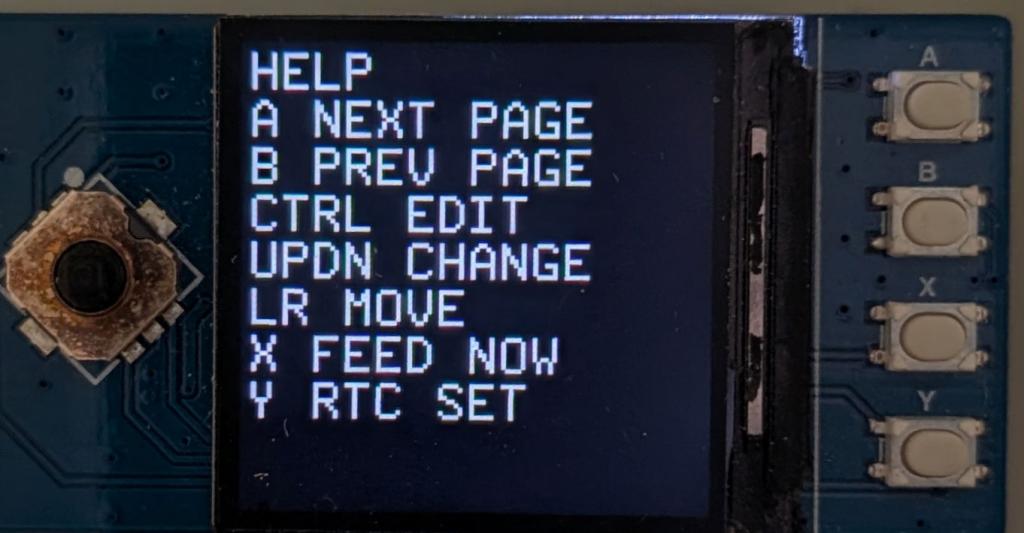 ' Automated fish feeder UI for PicoMite (240x240 display + buttons/joystick)