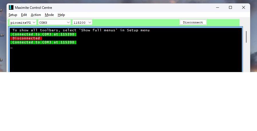 This version doesn't work with mmedit-mmcc. the terminal goes red highlight text and no keyboard, All working before PicoMiteHDMI MMBasic USB RP2350A Edition V6.01.00b11 OPTION SERIAL CONSOLE COM2,GP20,GP21 OPTION FLASH SIZE 4194304 OPTION COLOURCODE ON OPTION KEYBOARD UK, 0, 0, 600, 150 OPTION RESOLUTION 640x480 @ 315000KHz OPTION DISPLAY 20, 40 OPTION SDCARD GP2, GP6, GP7, GP4 OPTION AUDIO GP0,GP1', ON PWM CHANNEL 0 OPTION DEFAULT FONT 3, 1 I don't know why and only know mmedit not xterm regards, stan |