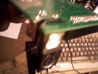sorry i should mention that i have the kb-sckt fitted up side down with the pins sticking up in the air once you have connected the wires just put a dab of silastic silicon sealent glue over the pins let it dry over night this will keep them from comming off and also insulate it ... :this is a pic of a vga cable sockt as i am going to atempt to pin it out and connect it to the "ev" board "