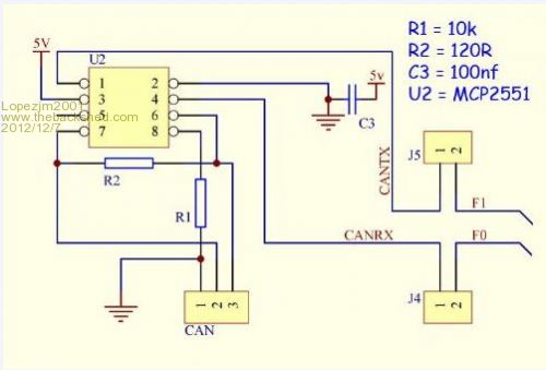 Thanks Mick, This is the way I want to go. The circuit diagram you provided is the same as that used by the Duinomite Mega CAN circuit that uses a PIC32 connecting to pins 58(RF0) and 59 (RF1). I am already running mmbasic 4.0 with CAN commands that were provided by John Harding. Hopefully it should be straight forward to get this done. Lopez |