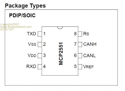 Hi Lopez, All, Firstly, CAN is not yet available on the Colour Maximite.. I think Geoff is going to include the routines using F0 and F1 as the CAN pins. Secondly, taking note of the section of my schematic, (the one with the pale yellow background), please note the pin Numbering of the IC is not the same as the PHYSICAL pin numbering so dont wire up as if the position of the pins are as shown, use the pinout as shown in the "package types" above., (i.e. The NUMBERS are correct, the physical location of the pins is not.) Also I have provided links to connect F0 to F1 as these are also used as D4 and D5 on the Arduino connector. This is so the CAN chip can be in circuit but not connected to the PIC32 unless you decide to use it. Regards, Mick Mick's uMite Stuff can be found >>> HERE (Kindly hosted by Dontronics) <<< |