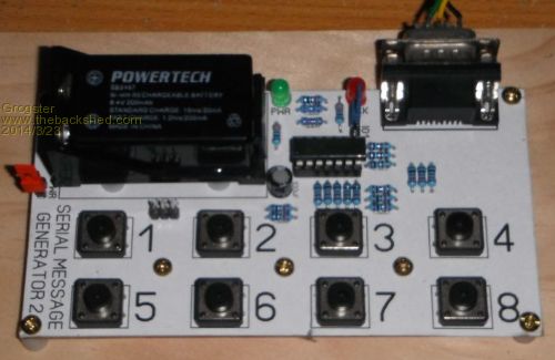 This is based on a PICAXE 14M2, and you can program it to output any message you want, on any of the 8 buttons - I have the coupled to the Colour Maximite at the moment, and I can send it any one of 8 messages any time I press a button - also useful for sending multiple messages, and seeing how the MM serial buffer deals with it.(very well, actually!) Smoke makes things work. When the smoke gets out, it stops! |
