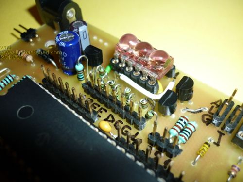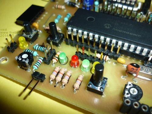 It is a home made 100x75 mm single-sided development board designed to put the PIC18F46K22 on a trial to see how it behaves compared to a Sanguino board. It is still on a "almost ready" state but can be used as it is. I chose to have it instead of a "Sanguino breadboard" style board which, together with a big breadboard would have occupied a lot of space on my small office. It is still missing a 7805 regulator (it powers from USB-to-Serial adapter), a 5v1 Zener diode protection for a resistive divider (measuring up to +55Vcc but is ok if I don't get close to the maximum voltage) and those two trimpots are just for show (not soldered) as they are 100K instead of 10K - one is for testing the ADC, the other is for LCD contrast. It has a PCF8583 as RTC (not tested yet) with two jumpers for 4k7 pull-up resistors and a smd battery socket bellow the board, a serial connection (Arduino standard) with a jumper on VCC and the another on the automatic reset function (which is not used by the actual bootloader, a modified AN1310 serial bootloader who needs a button to enter in boot mode): The taller 3pin female connector (Arduino socket style) is to accommodate an interchangeable IR decoder (for 36, 38 or 40 KHz) and the smaller 3pin female connector is for a Dallas temperature sensor. The longer female connector is for 16x2 LCD display: There are 2 user buttons, 4 user LEDs, a trimpot for ADC testing, a resistive divider for measuring external voltages, an ICSP connector (the black horizontal 6pin female connector): 12 years ago I recovered from a vintage computer board this Bubble Display (3 digits 7 segment) which I had no immediate use for it (not even curious to see the pinout), with the code "HP 5082 7433" It was hard to fit into such a small space and a single-sided design but now is ready to be stressed (datasheet here - and here, you can find a 4 digits one on ebay): Until now, I've tested only the bootloader and did a blink a LED test. Personally, I'm not happy with the final result. Originally, the board was 100x80 mm (the maximum on Eagle Lite) then I had to resize it to 100x75 mm because it was what I had available, then I had to move the peripherals around to make space for the Bubble Display which was a last minute addition (remembered that I had it and I thought it would make a better impression than a single, regular 7seg. digit). All the other male connectors are for connecting the micro pins with the peripherals and also there are two buses (I2C and 1wire). Vasi Hobbit name: Togo Toadfoot of Frogmorton Elvish name: Mablung Miriel Beyound Arduino Lang |