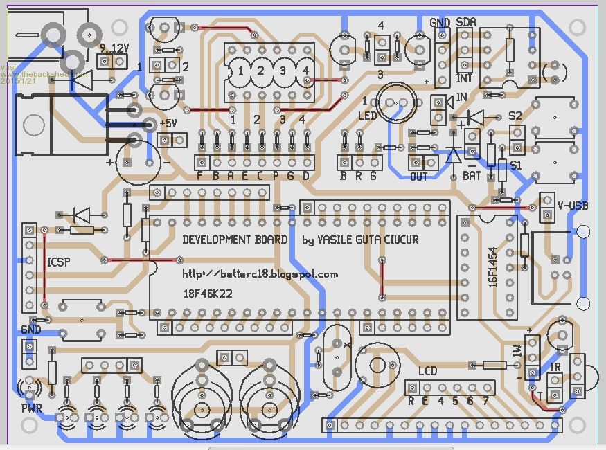 Take care about the 40pin footprint, it was converted with a Microchip tool for Eagle, as Eagle don't have that micro, and I had to bend the pins of a 40pin socket to force it to enter in the holes. You can replace it without problems with a PIC18F4550 footprint, as there are perfect matches for pinout. I insist in continuing with Eagle as from here it can be exported to both KiCAD and DipTrace eda packages. I would have used KiCAD because I'm working in Linux but then not much use for many. Now, where to get the Eagle components: - ds1307 - pcf8583 RTC; - DS1820 - temperature sensor; - TSOP48xx - IR Receiver; As for RS485, you have an equivalent in LTC485N from Linear Technology, included already in Eagle 6.x. Not sure if the same pinout. A DS18B20 TO92 component can be found here, where you can get many more useful libraries. Hobbit name: Togo Toadfoot of Frogmorton Elvish name: Mablung Miriel Beyound Arduino Lang |