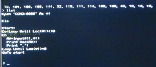 If I change the code to the one where there is the ; on the end of the hello world message, and print #1,chr$(13) on the next line, I still only get 12 bytes - the message, with no CR or LF at all - code is totally ignoring the line Print #1,chr$(13);