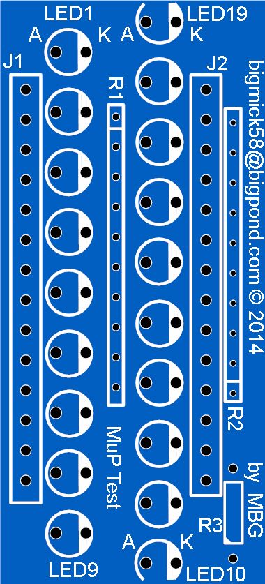 Looks good Mick, I will take an Airmail worth!! Two things: 1> Is this a double-sided PCB to allow the LEDs (or connectors) being on the 'opposite' side of the board so that all the LEDs can be seen when this PCB is connected to the MuP? 2> J2 pin 10 to ground - is this correct? From memory this is Vcap isn't it? (I am not next to a MuP at the moment to check this myself so just wanted to highlight this as a possible error (apologies if I have remembered this incorrectly) WW |
