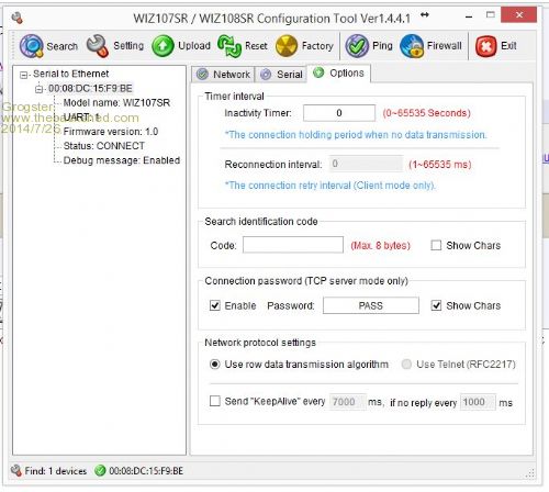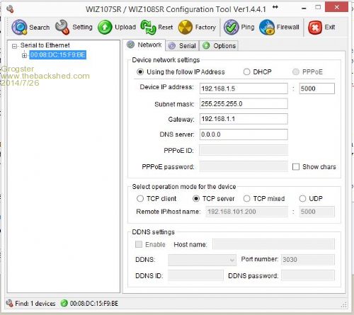 Armed with the module, a suitable PSU and the configuration tool, I was able to find the module on my network, and set it's IP address so that it is in the same subnet as the rest of my network, which is the very common 192.168.x.x