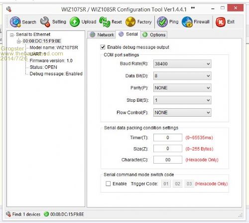 I think I now have a connection to the device, so I will try hooking a MicroMite to the serial-port of the network module, then reconnect and see if I can talk to the uM via the network and TT - stay tuned!