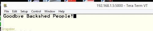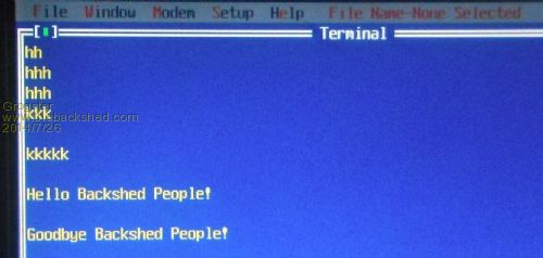 You only see the goodbye message here, as I changed the font size in TT once I was getting something, to make it easier to read, that is why the hello message is missing from the TT screenshot.
