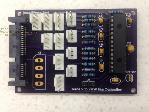 @WW X1 is there if you want to use a normal Molex hard drive power connector you will also need to fit the 3.3v Regulator Yip the SATA connector is the black bit on the left (Through hole version) The voltage inputs are the 4x 3pin connectors the outputs are the 7x 4pin connectors Channel 1 has 3 outputs Channel 2 has 2 outputs Channel 3 and 4 have 1 output each The 4pin connector closet to the 3pin connector also supply's the tacho pulse Regards Jman |